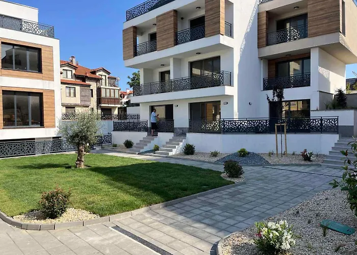 Featuring views of the inner courtyard, the beachfront 1-bedroom Студио Морски Дни-Топ Локация В Созопол apartment is situated in the Budjaka district of Sozopol, nearly a 5-minute walk from Bamboo Beach. The apartment offers a terrace with views of the garden.